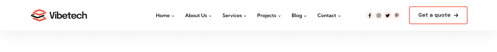 Third header with container and logo on left side, menu on center and cta button on right side.